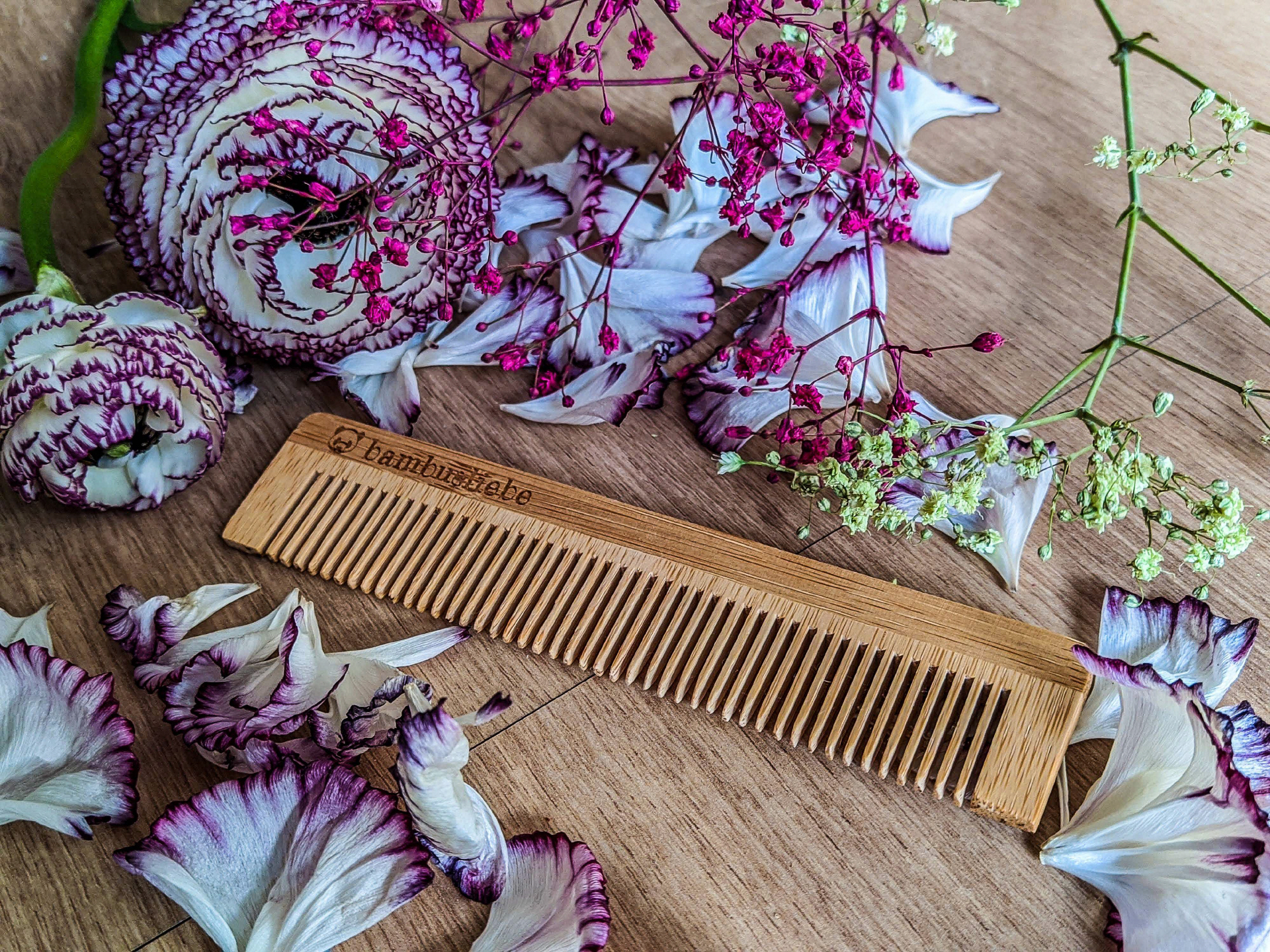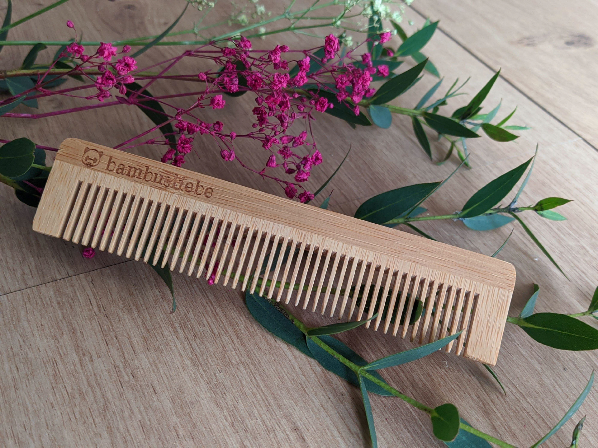 Der Bambus kamm besteht zu 100% aus Bambus und ist für jeden Haartyp geeignet.
