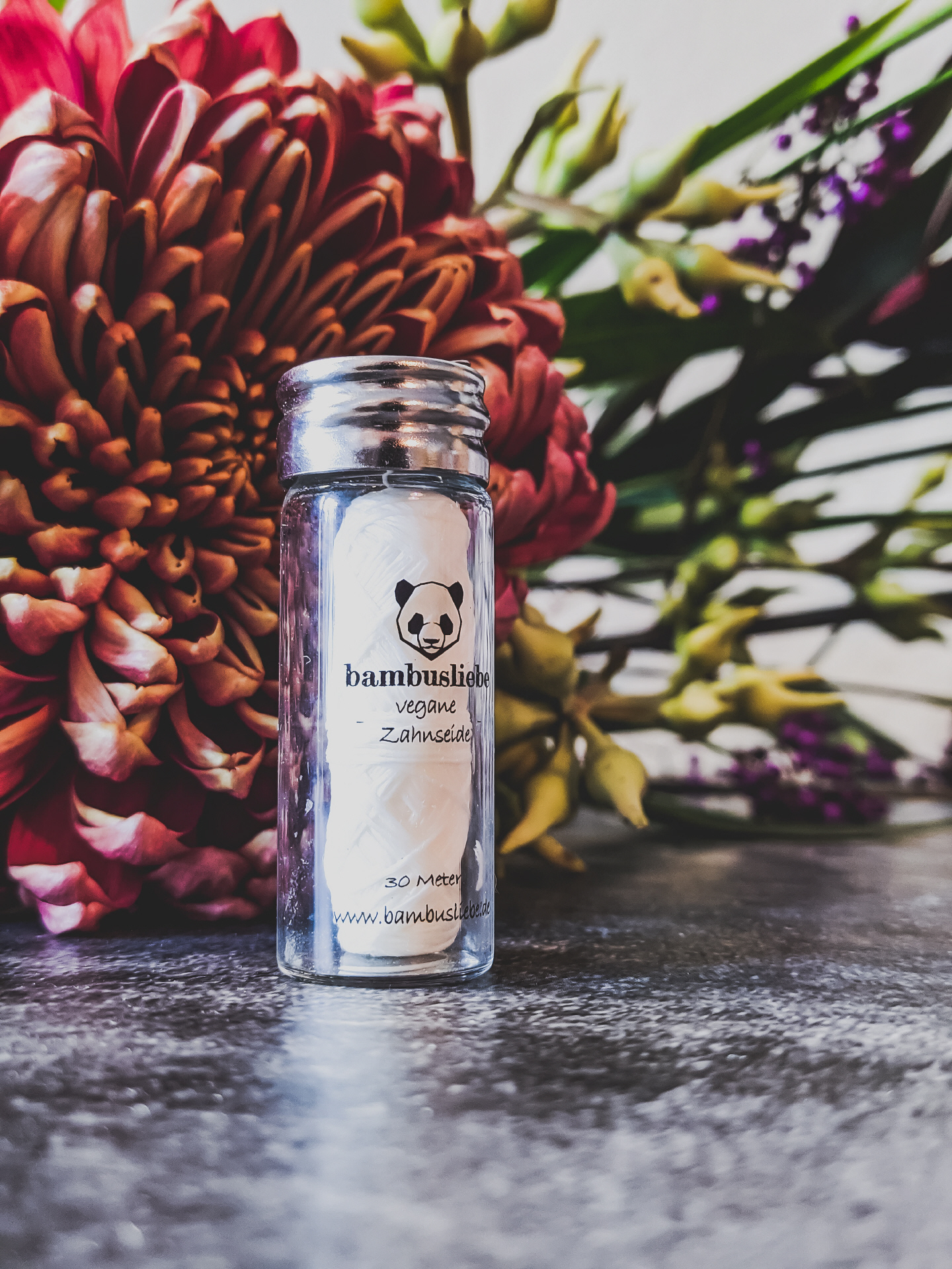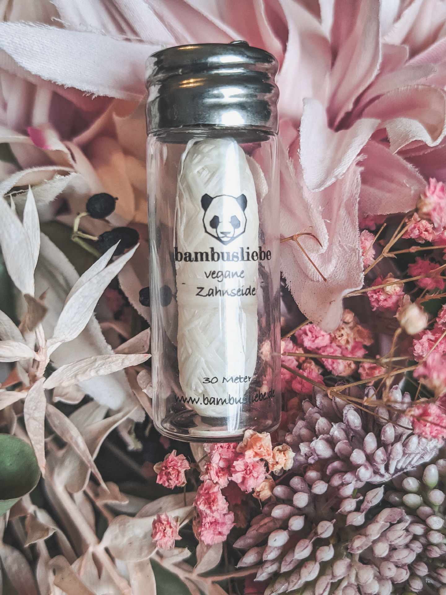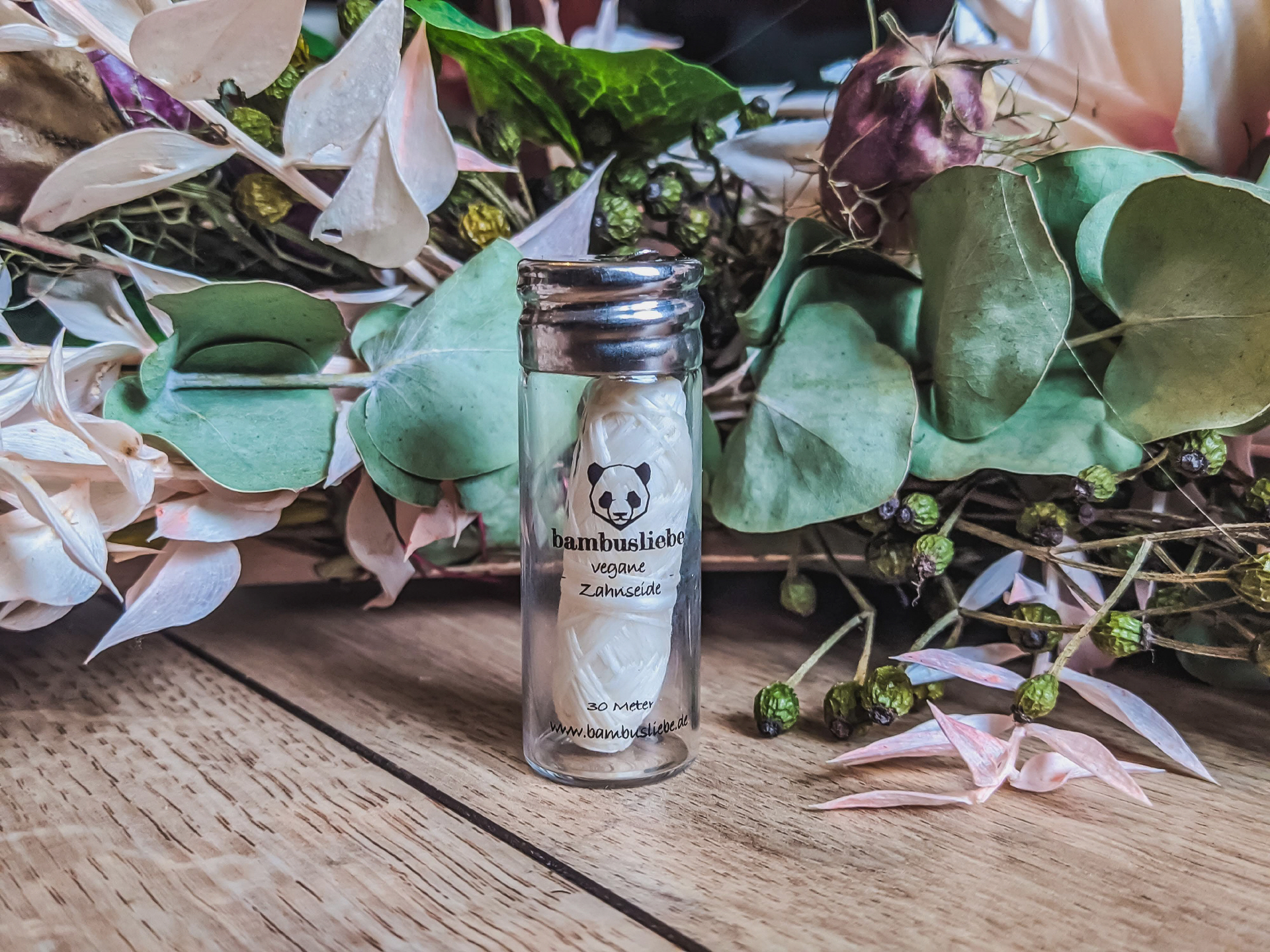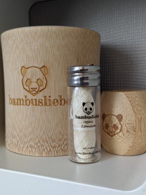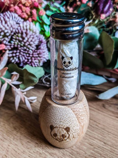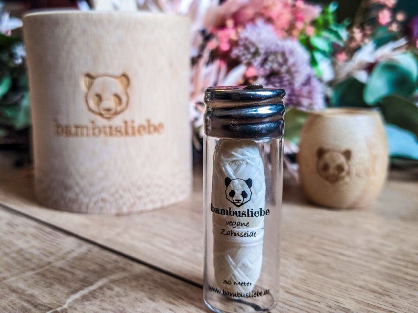 Die Bambusliebe Zahnseide ist vegan und ein Flakon enthält 30 Meter Zahnseide.