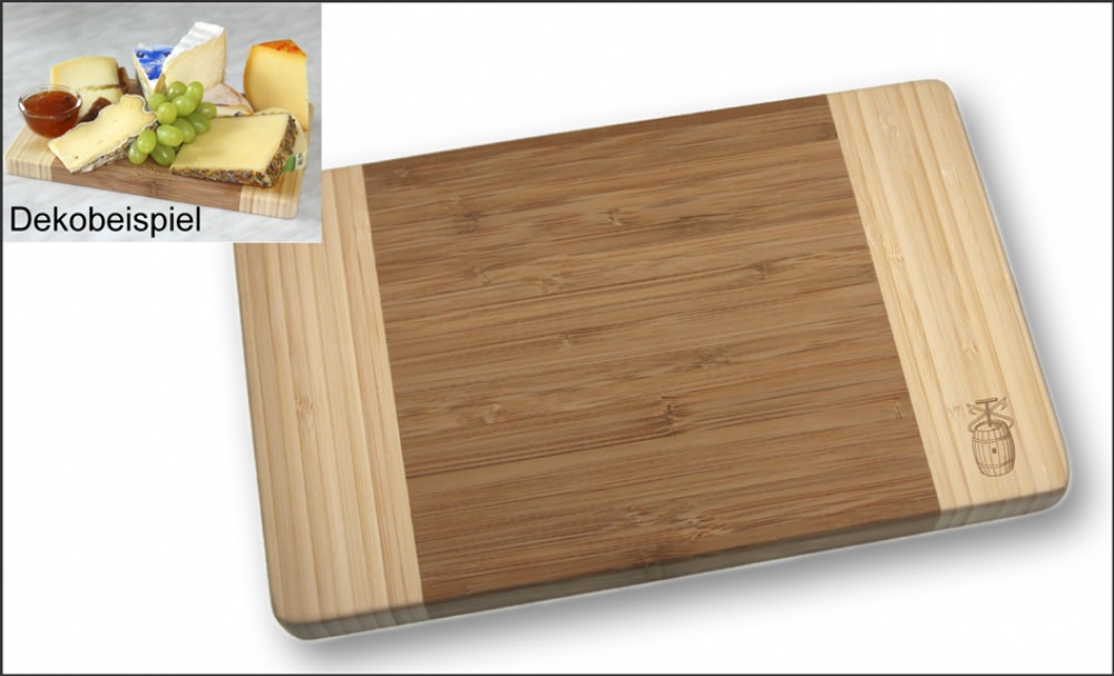 Bambus-Schneidbrett - Brotzeitbrett - Käsebrett "Küfer", ca. 27 x 17 x 2 cm, in Geschenkverpackung, Gravurempfehlung: auf Schneidbrett / Gravurschild auf Geschenkverpackung