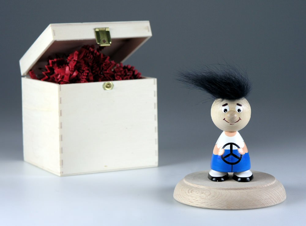 HolzHeinzel "Taxi-Fahrer" in-a-box, handbemalt, Sockel aus Buche-Massivholz, H: ca. 9,0 cm, in Holz-Geschenkbox (10,0 x 10,0 x 10,0 cm), Gravur-Empfehlung: auf Verpackungsaußenseite / auf Holzsockel